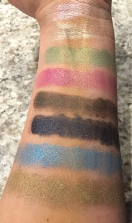 I asked the man which he liked best. His selections were Scumbag Pink and Blue Zircon. I agree. Those are very lovely. I also really like (from these swatches) Electrum, and Hidden Treasure. I had very high hopes for Pink Opal - but I'm not discouraged yet. I think it will pop well over a white sticky base for a calmer daytime look or work well as a highlight (inner eye or brow). I am also lured into the beatiful green sparkle of Aventurine and I know it will be worth the hassle to get it to stick on the eyes. I am also eagar to see how the more matte colours work, and I suspect I am going to like them.